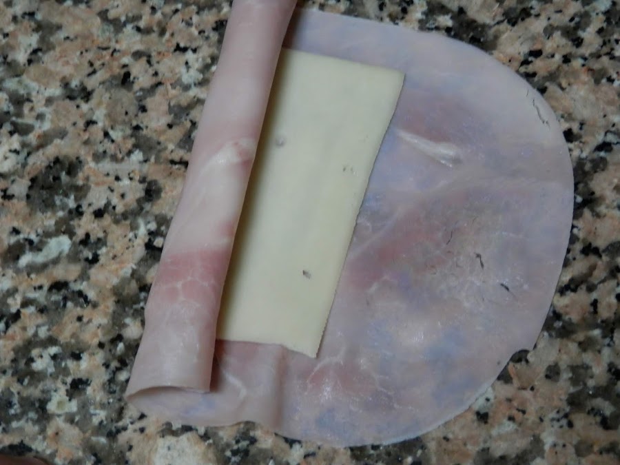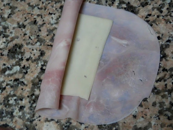 Extiende el jamón york y pon en su centro la loncha de queso.