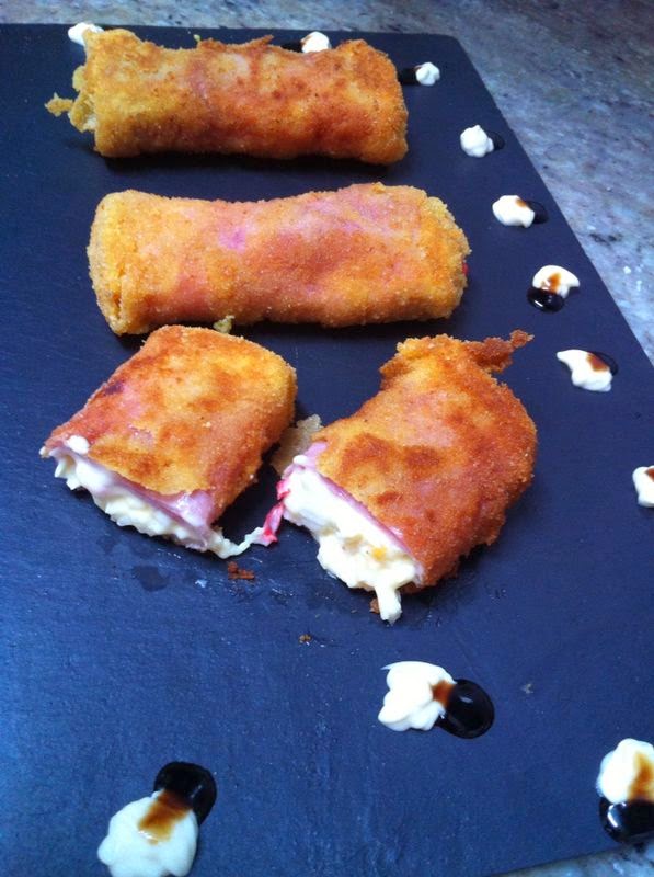 Y por último la otra media loncha de queso, para después enrollarlos.