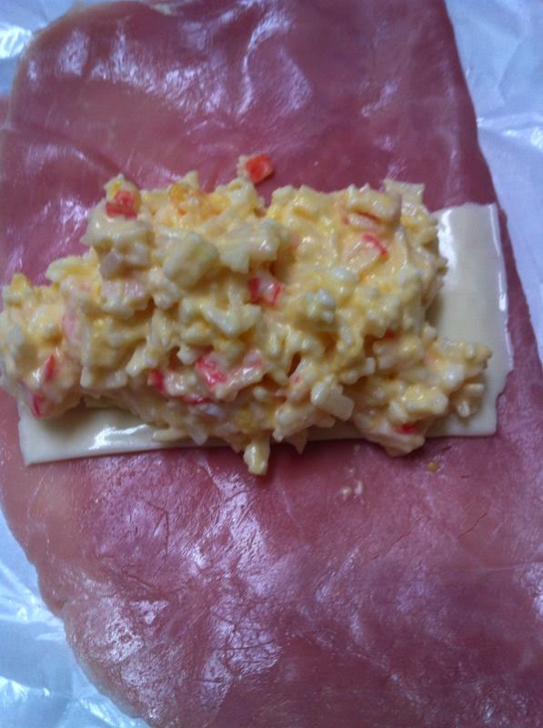 Pondremos en una raja de jamón york doblada por la mitad, media loncha de queso.