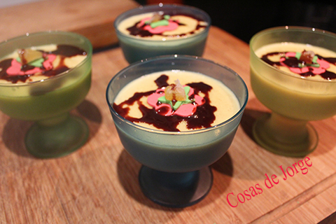 Cuando la leche comience a hervir, la repartimos entre los cuatro recipientes donde serviremos nuestros flanes.