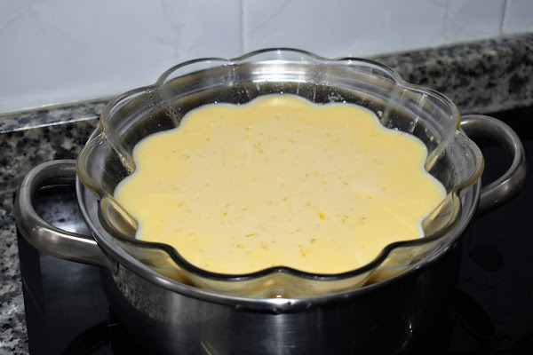 Ponemos una olla con agua al fuego y metemos la flanera dentro.