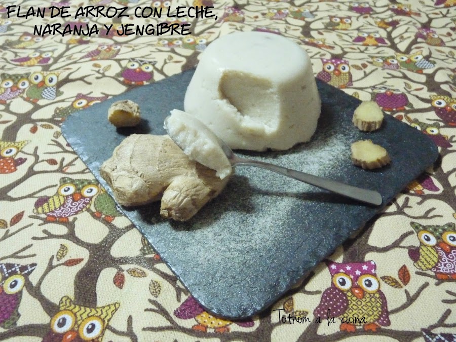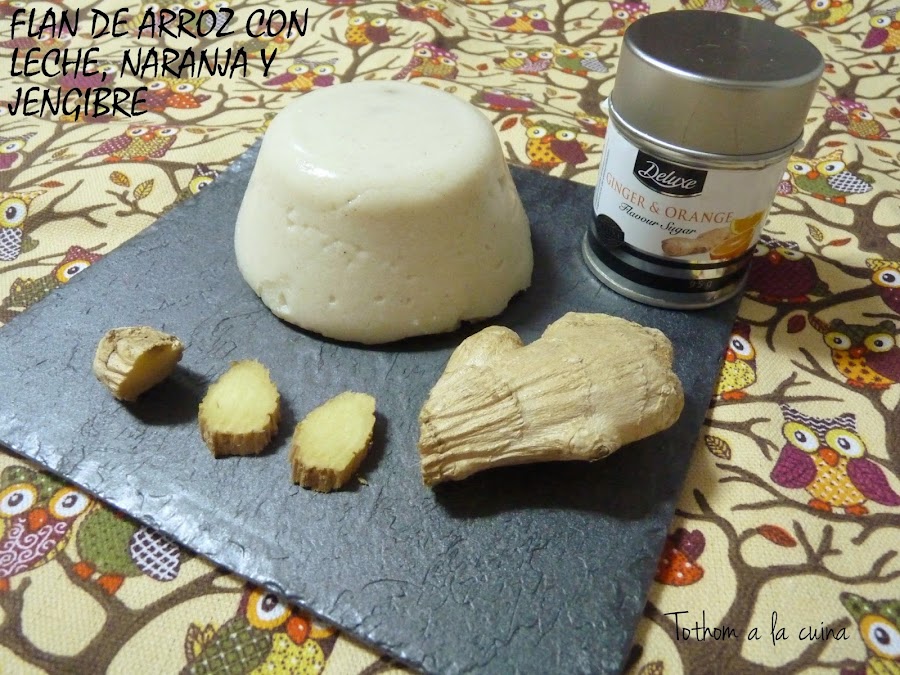 ¿Y por qué este flan? La inspiración final llegó cuando "buceando" en la estantería donde tengo todas las cositas que utilizo para las recetas había un botecito que compré hace un tiempo por impulso incontrolable de "me lo llevo". Ponía "naranja y gengibre" y en la parte trasera ponía que servía, entre otras utilidades, para condimentar el arroz con leche.