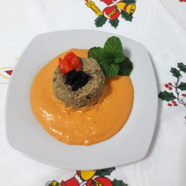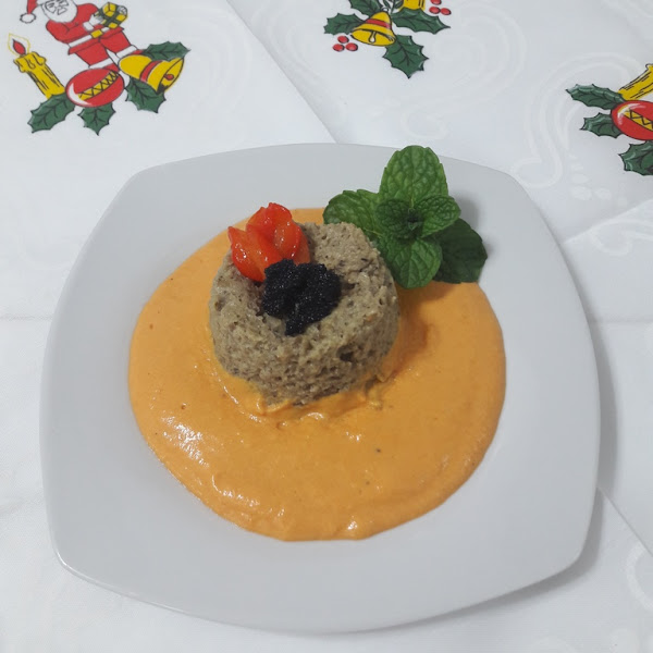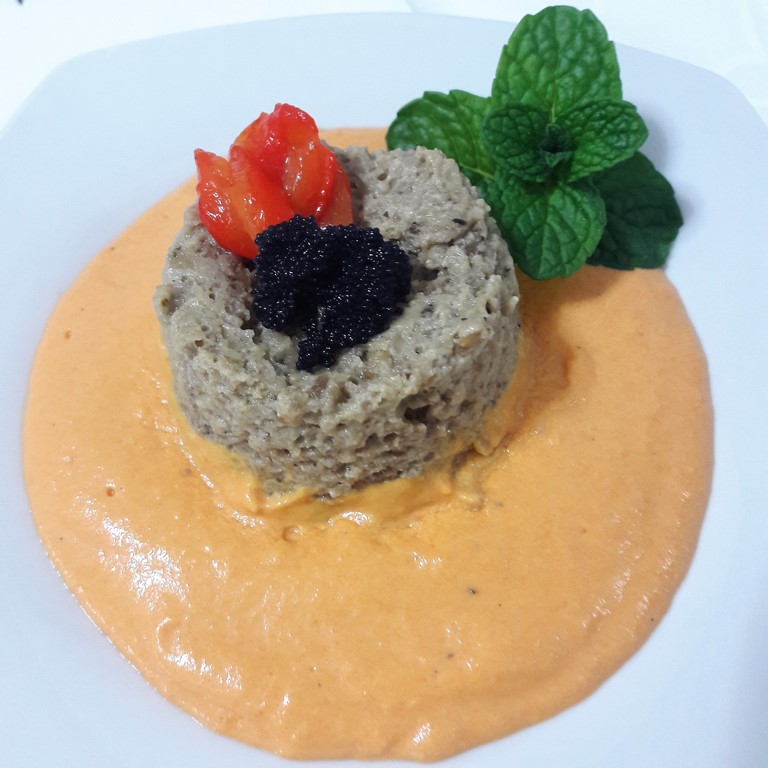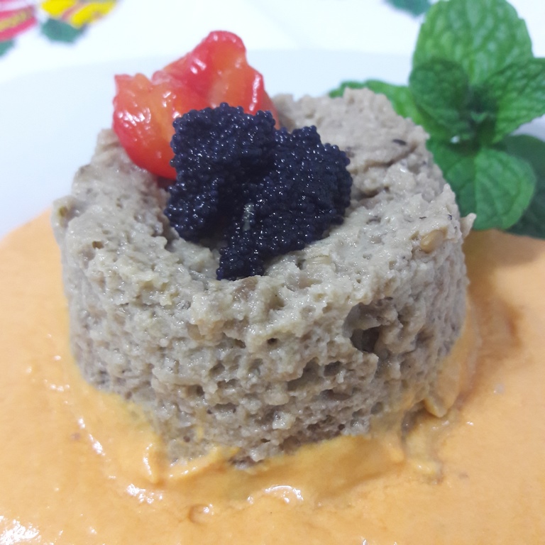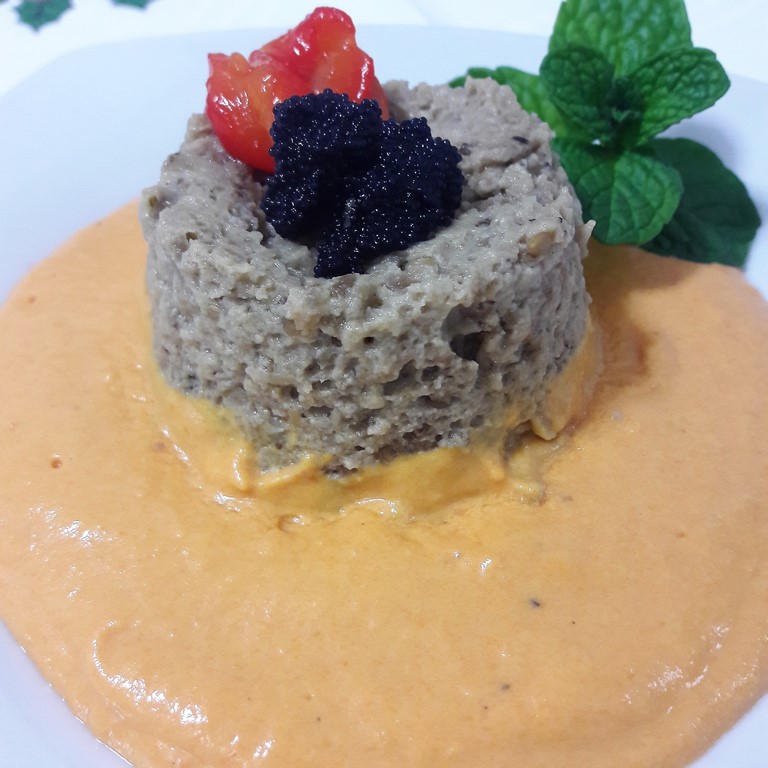 Esta receta que os traigo hoy, es un nuevo reto, espero que llegue a gustaros tanto como a mi, le he puesto mucho cariño, además las verduras siempre deben estar presentes en nuestra dieta y en la de nuestros hijos y que mejor forma, que disfrazarlas un poco para degustarlas, saborearlas y conocer nuevas texturas como este flan de berenjenas acompañado de una salsa de pimientos rojos con tomate, decorado con unas huevas de capelán que le dan el toque final os va a encantar.