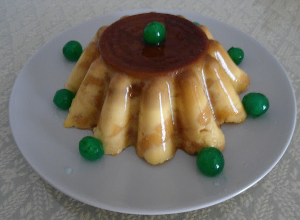 En un molde colocar el caramelo liquido ( se puede preparar casero, en un cazo se pone 3 o 4 cucharadas soperas de azúcar y 1cucharada de agua, mover hasta que se ponga de un color rubio, si gusta se le pone una gotita de limón) encima una capa de bizcochos, se pone un poco de la crema del flan, otra capa de bizcochos y otra de crema, así hasta que se termine el flan.