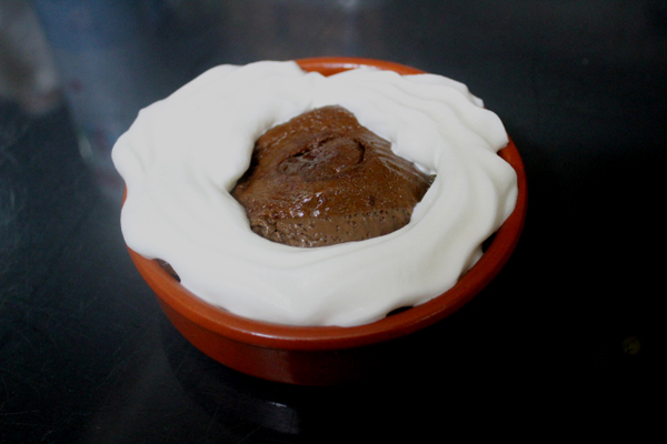 Guardamos en el frigorífico y en el momento de servir decoramos con nata (crema de leche) en spray.