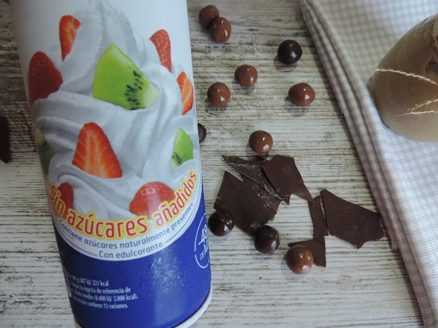 Para decorar podemos usar nata (crema de leche) ligera sin azúcar añadido para decorar.Yo suelo comprar la de pascual,está buena y no tiene tantas calorías.