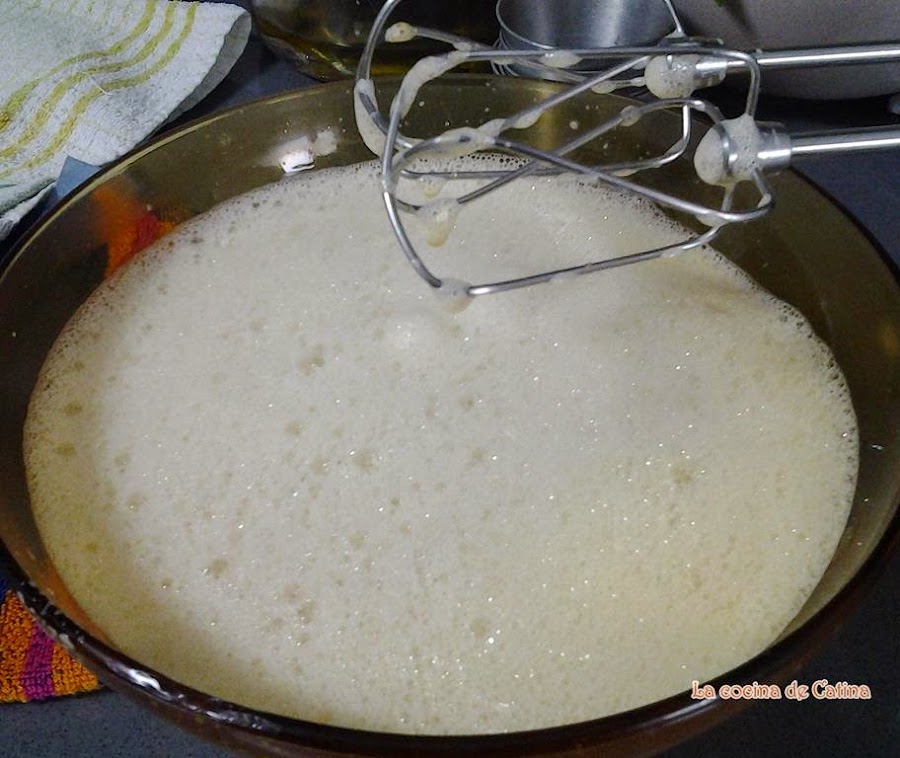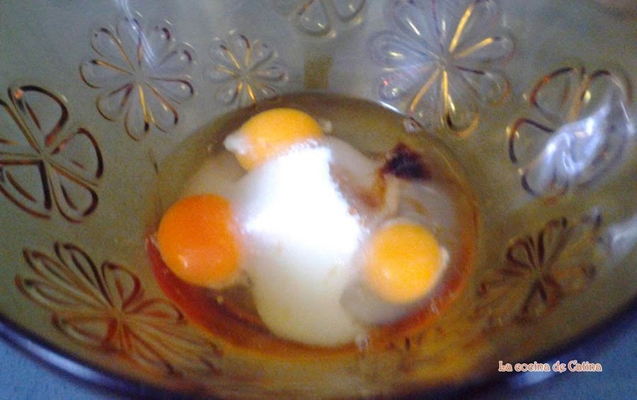 En otro recipiente batimos los huevos con el azúcar y la vainilla.