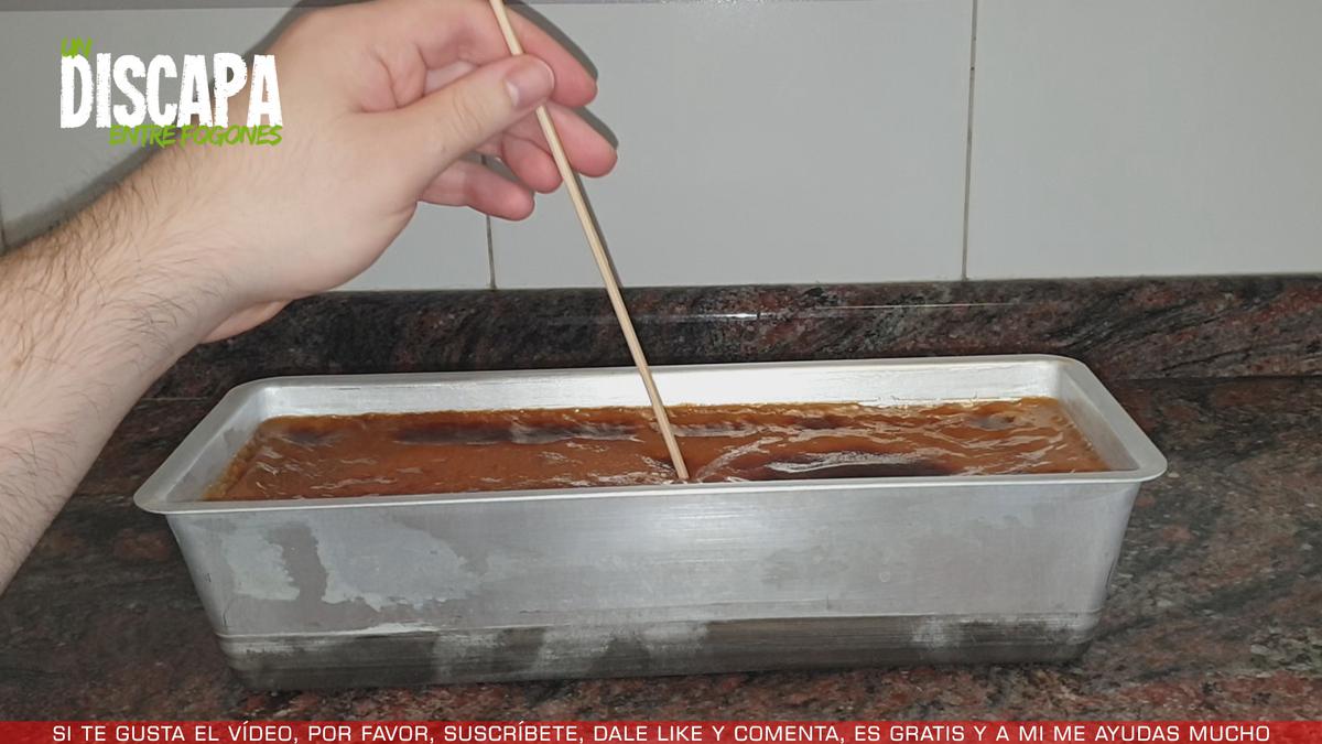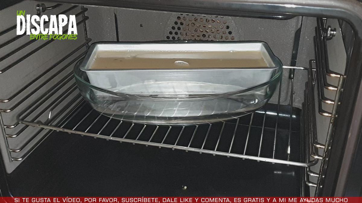 7Pasado ese tiempo, metemos un palillo y si sale limpio es que el flan ya está hecho y si sale sucio pues lo dejáis en el horno 5 minutos más. En este caso el palillo sale limpio, así que el flan ya está listo. Dejamos que se atempere y después lo metemos en la nevera mínimo 6 horas, pero si es de un día para otro pues mucho mejor.