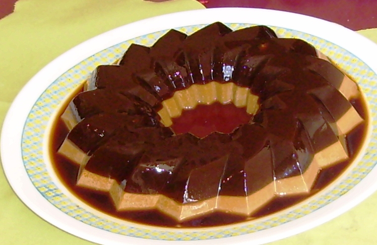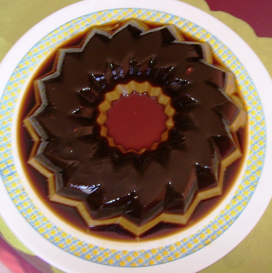 Como podeis ver, el resultado es un flán de dos colores,os puedo decir que para que salga así teneis que utilizar nata (crema de leche) pascual, no me pregunteis porqué, pero cuando uso otras, sale de un color crema oscura pero homogeneo. Usando esta nata (crema de leche) se separa la gelatina y sale en dos colores.
