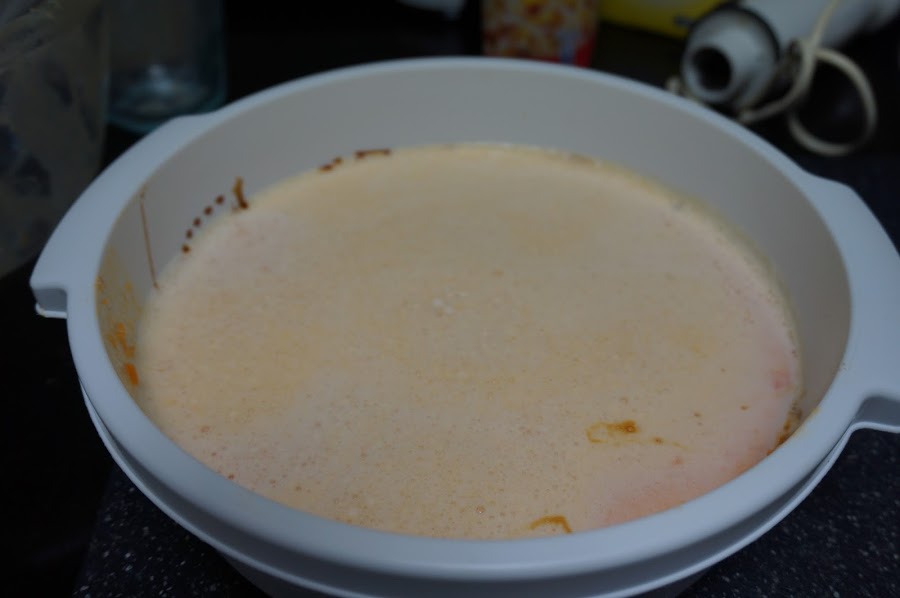 Una vez bien batido incorporamos los 400 gr. de calabaza y mezclamos bien.