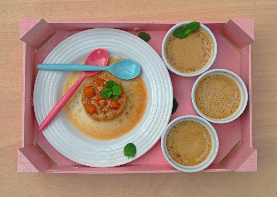 Según la escritora al papa Juan XXIII le gustaba la buena mesa y la cocina tradicional como los guisos y los platos de cuchara, pero también tenía debilidad por el pan, los embutidos, las tartas, los helados y los flanes como éste de calabaza y naranja.