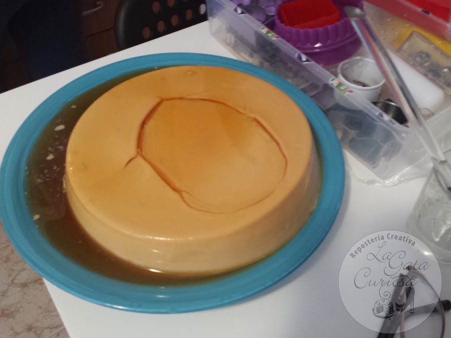 Untamos con caramelo liquido un molde a nuestro gusto, redondo, alargado, cuadrado, tenemos cuidado de untar también las paredes del mismo. Luego con cuidado vertemos la preparación del cazo. Dejamos enfriar a temperatura ambiente, una vez frio cubrimos con film y dejamos en el frigorífico hasta el día siguiente.