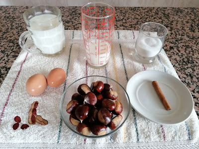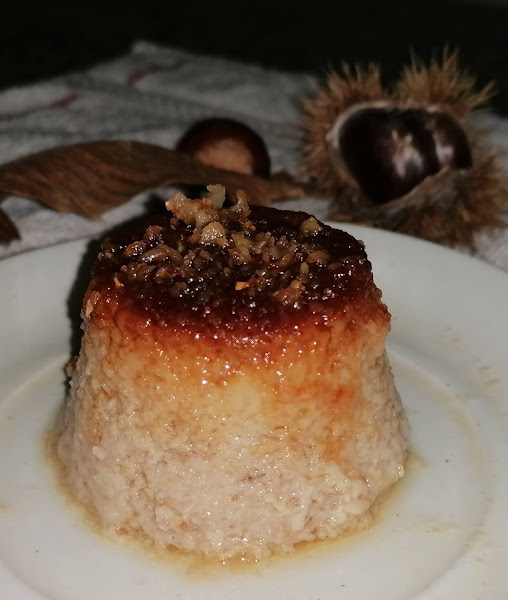 Tengo en mente hacer una tarta de queso con castañas, pero cuando quise hacerla me faltaban la mitad de los ingredientes, no está la cosa como salir cada dos por tres y menos durante el puente, así que tirando de lo que hay en casa me decidí por un flan y menos mal, porque realmente repetiré, es increíble el toque que le da el sabor a castaña.