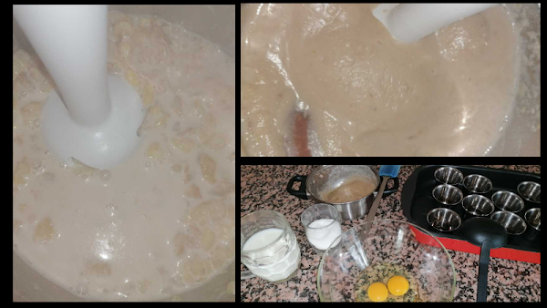 Una vez peladas las cortamos y ponemos en un recipiente con 250 g de leche y la ramita de canela, dejamos cocer otros 15 minutos, removiendo de vez en cuando para que no se pegue, cuando ya este, retiramos la canela.