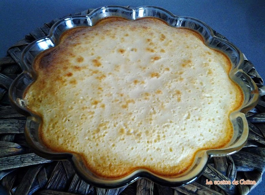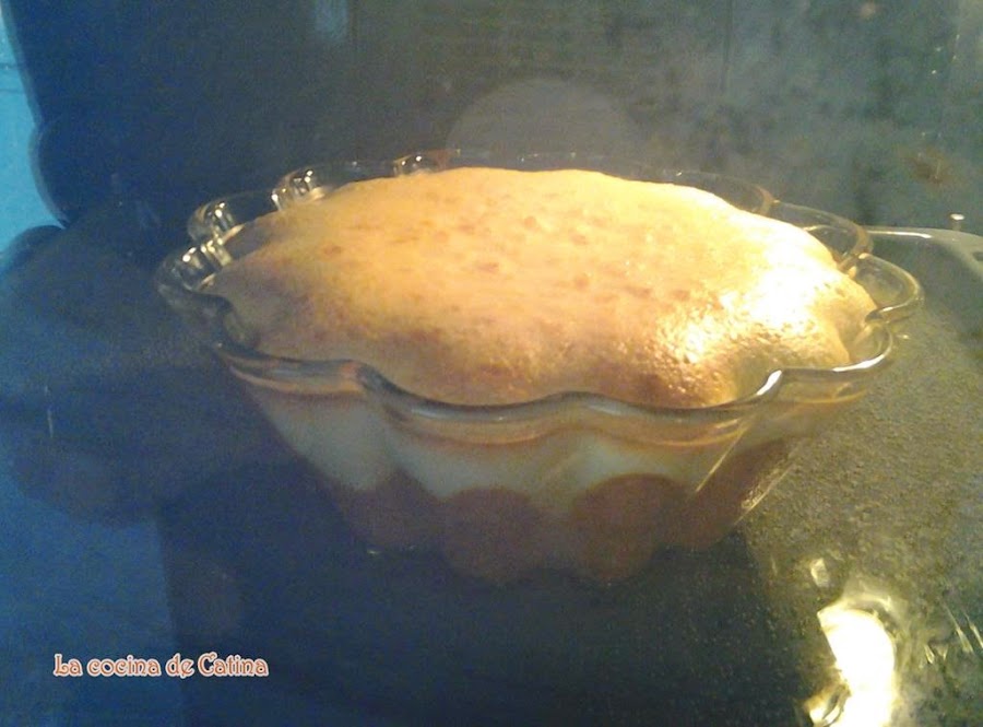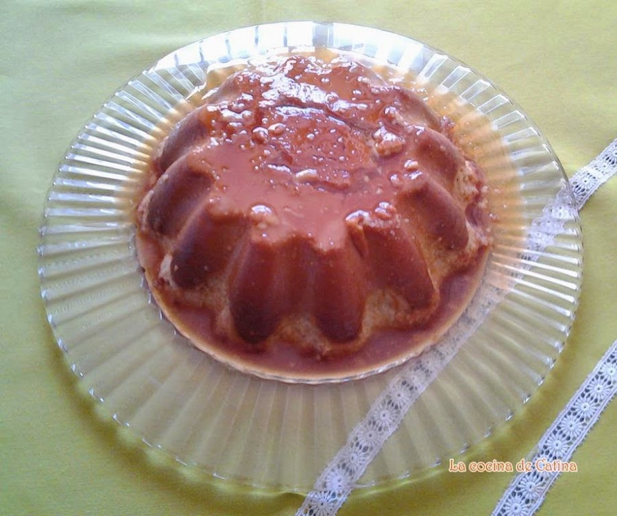 El resto del azúcar se pone en un molde con un poquito de agua y el zumo de limón, lo ponemos a cocer en el microondas, hasta que está hecho caramelo, lo extendemos por todo el molde y lo dejamos enfriar. Añadimos la pasta de chirimoya al molde y lo ponemos en el horno precalentado durante 60 minutos. Para asegurarnos que está cocido, pinchar con un pincho de brocheta, y si no sale limpio, dejar cinco minutos más. Dejar enfriar, desmoldar, y listo para servir.