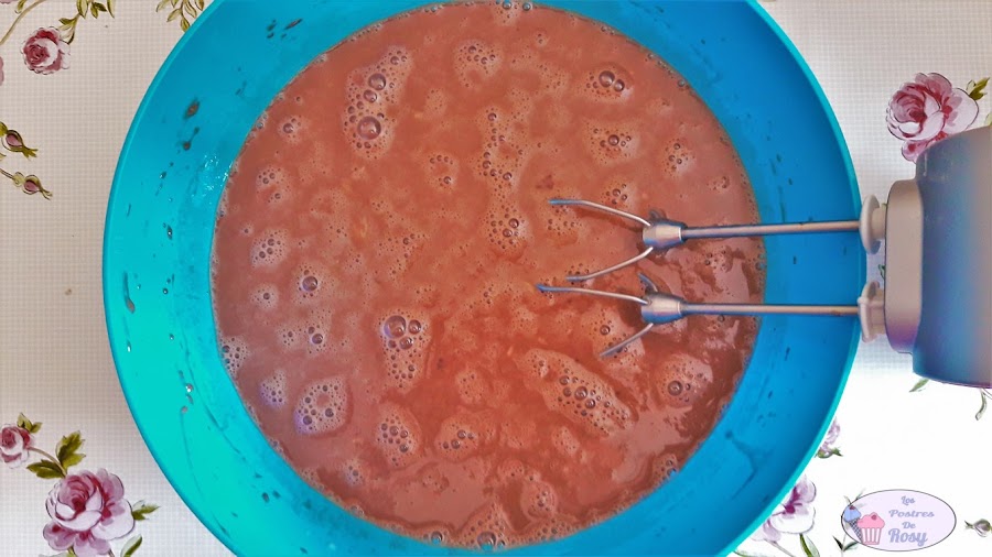 - Ponemos todos los ingredientes en un recipiente amplio y batimos hasta que quede completamente integrado.