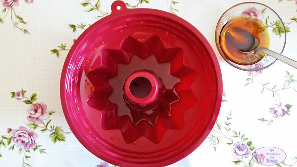 - Bañamos el molde elegido con caramelo líquido (para que no se nos pegue el flan).