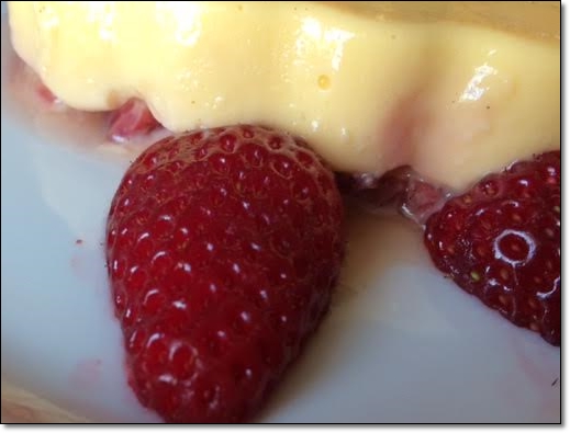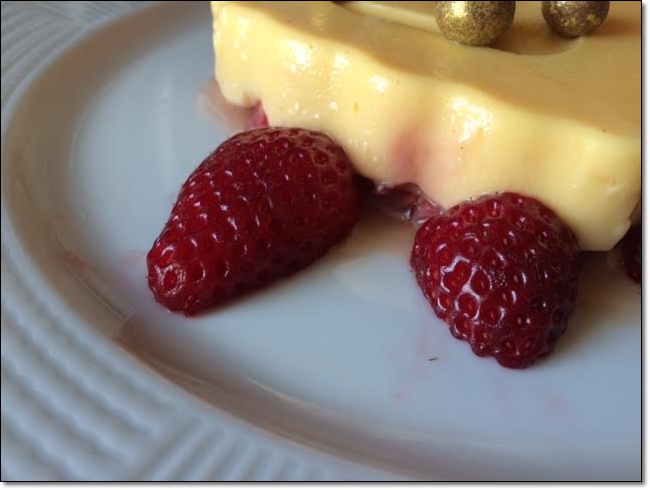 Meter en el frigorífico un rato y cuando empiece a enfriar y a cuajar le repartimos las fresas picaditas. Meter en la nevera y dejar que se solidifique todo durante unas 5 o 6 horas.