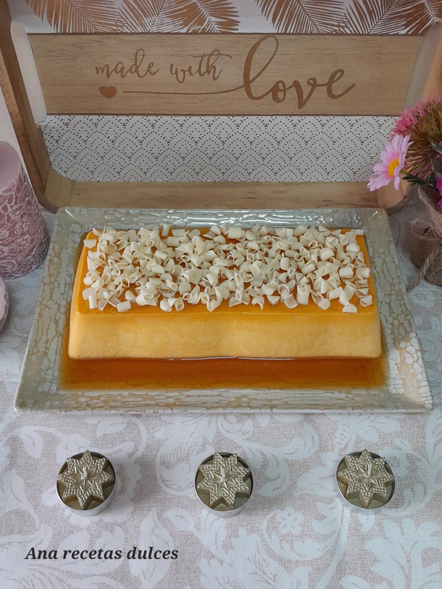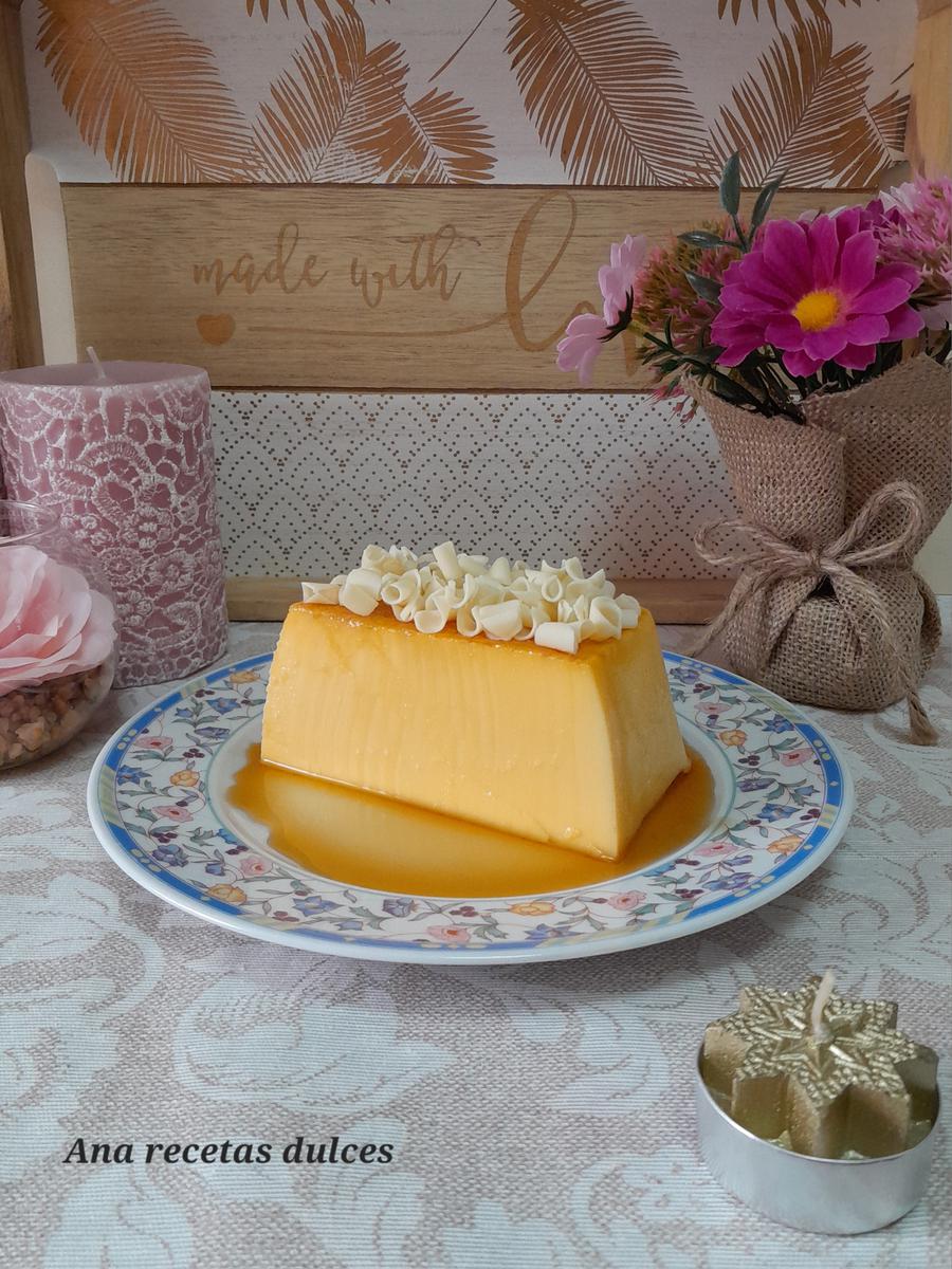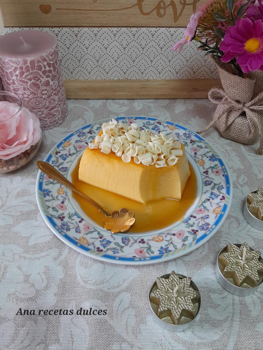 Es un flan de textura ligera y suave, sabor a chocolate blanco, un postre que dará el punto perfecto de dulzor al final de una buena comida familiar o con amigos, y que gustará a todos.