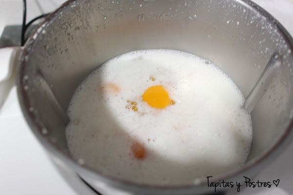 Dejamos entibiar unos minutos e incorporamos los huevos y batimos bien 30 segundos a velocidad 4.