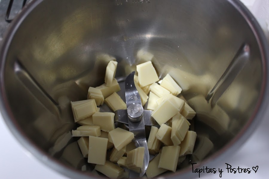 Troceamos el chocolate blanco en la thermomix 5 segundos a velocidad 10.