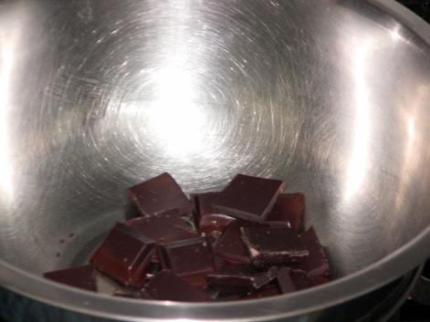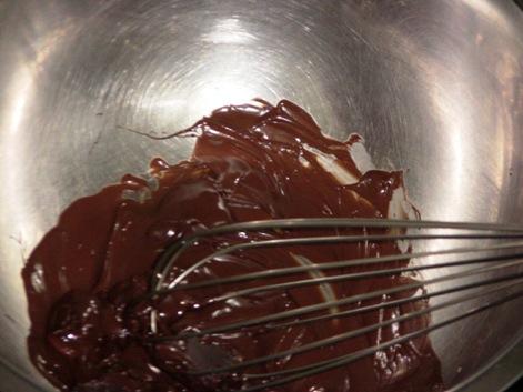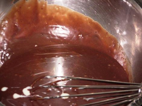 En una cazuela ponemos a calentar agua, encima le ponemos un bol en el que ponemos el chocolate para fundirlo, cuando ya está líquido le añadimos la leche condensada y removemos hasta que está todo perfectamente integrado, esto por si mismo… si no os frenáis os lo coméis a cucharadas jejejeje.
