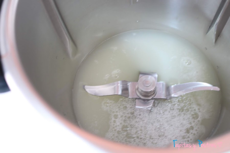 Ponemos las claras y el agua en el vaso de la thermomix y programamos 4 minutos, 70º y velocidad 2.