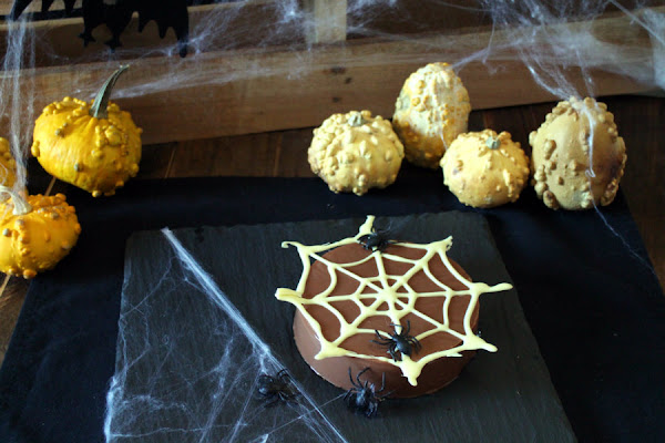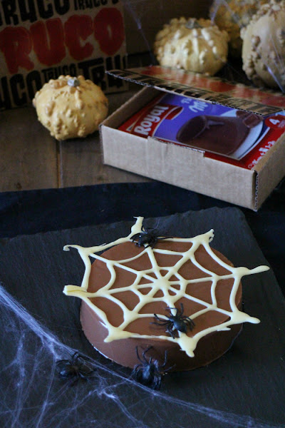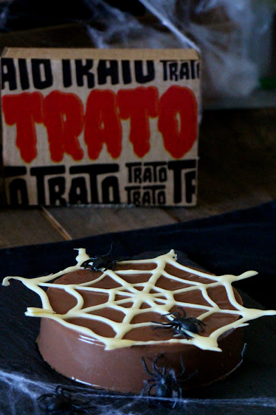 Al final opté por hacer una tela de araña con chocolate blanco (para que contrastara con el color del flan) y poner unas arañitas por encima.