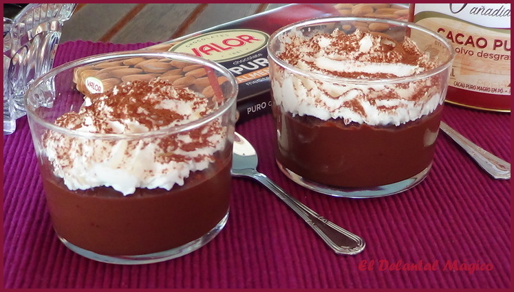Servimos decorado al gusto, en mi caso con un poco de nata montada (crema de leche) y cacao en polvo espolvoreado.