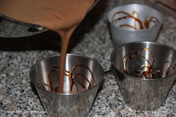 Vertemos el preparado en unas flaneras caramelizadas y horneamos a 150º hasta que estén cuajados.