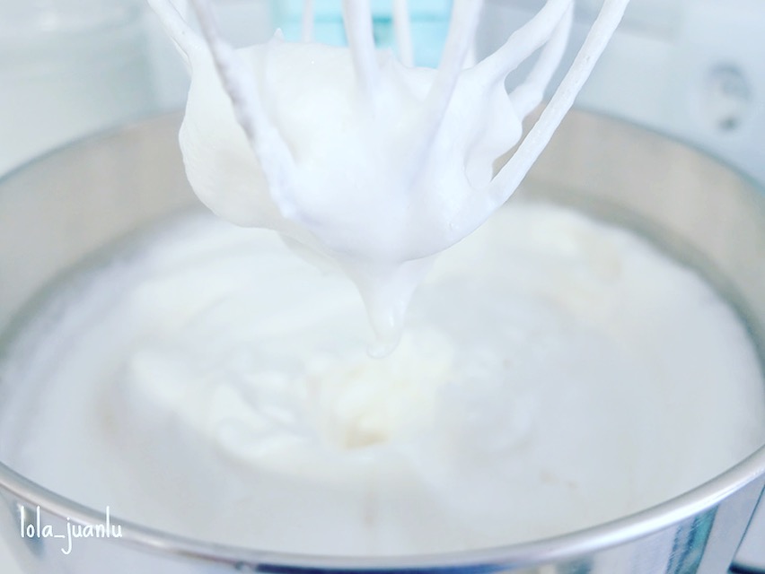 Dejamos de batir cuando las claras estén esponjosas y hagan picos firmes.