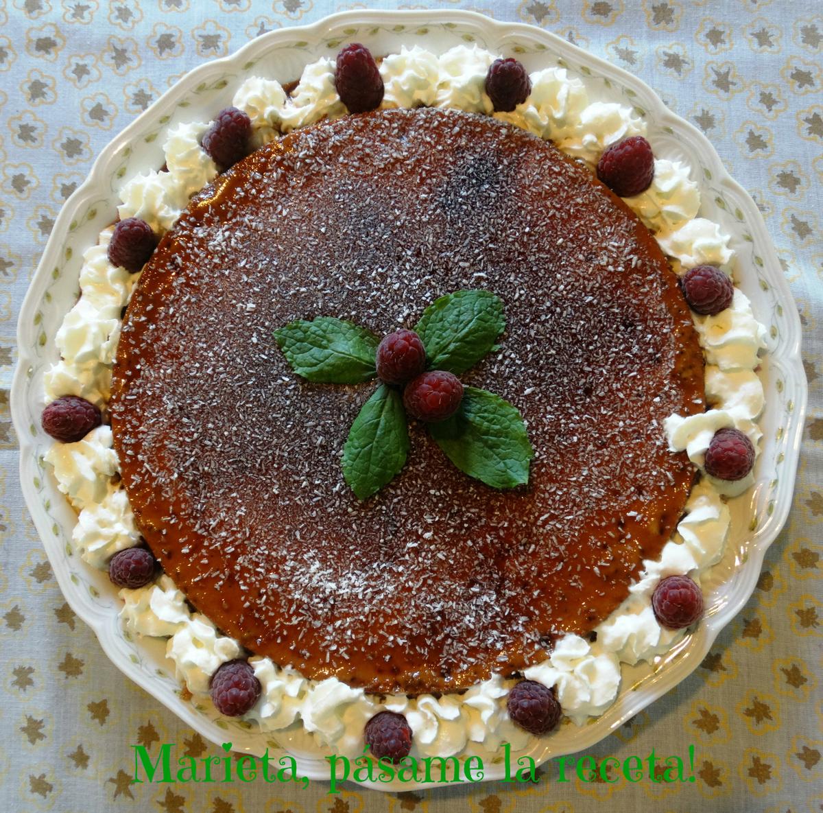 Los que me conocéis sabéis de mi adoración por el teatro, una actividad de la que no sería capaz de prescindir porque es un lujo poder vestirte con otra piel y vivir otras vidas (aunque sólo sea por un instante), las de tus personajes. Hace unos días cambiábamos el ensayo de cada lunes por una mesa redonda repleta de exquisiteces, para poner el broche a la temporada y despedirnos hasta septiembre. Fue una velada entrañable, de risas cómplices y verdadera camaradería. Una cena como yo llamo, “de traje”… (yo traje esto, yo traje lo otro), en la que cada cual aportó un manjar de su cosecha y su humor particular En el reparto, a mi me tocó ocuparme de uno de los postres… que raro! Les preparé con esmero este flan de coco que fue acogido con aplausos y elogios, lo que me llenó de “orgullo y satisfacción”, vamos que me sentí como una reina!