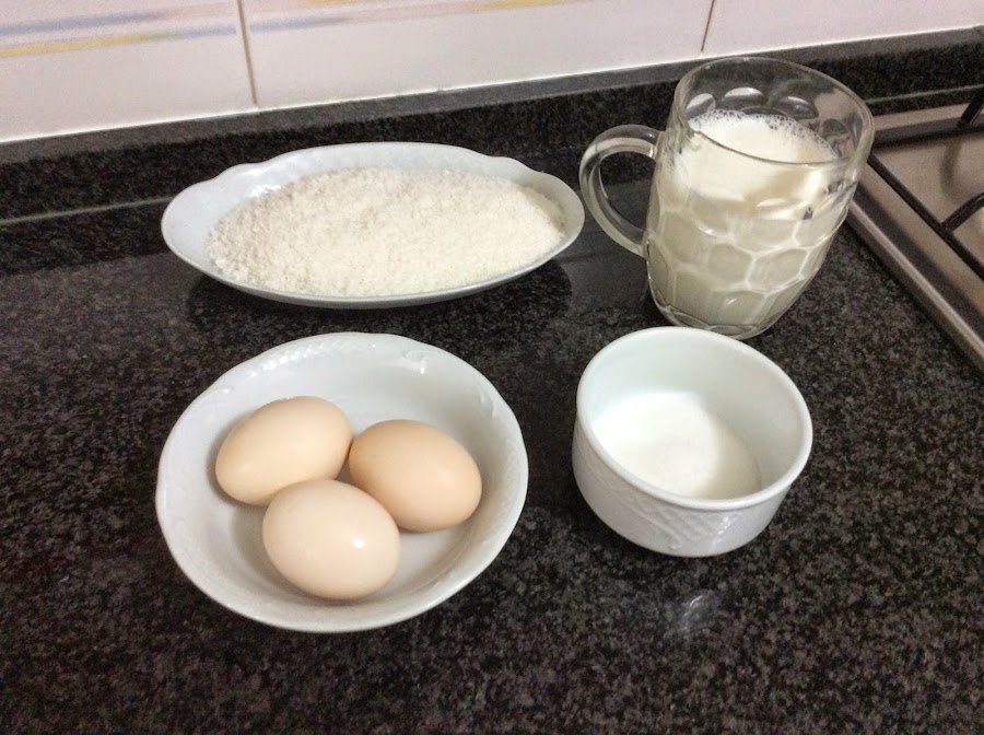 b) Batir los huevos con el coco rallado y a continuación aportáis el azúcar y la leche tibia, continuar batiendo para que se integre todo muy bien.