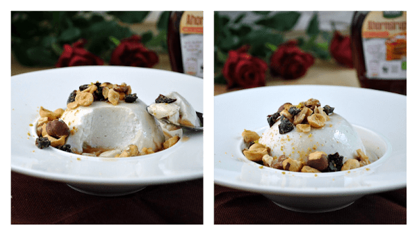 Flan de coco y vainilla con sirope de Agave y frutos secos
