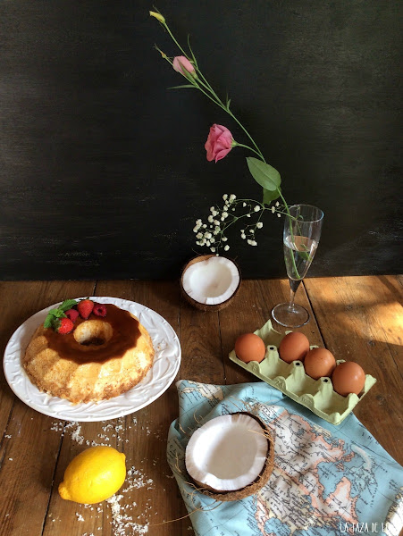 Bueno, para concluir quiero decir que tenía tanto calor que pensé en hacer algo sencillo y fresco. Este dulce que os presento hoy lo hago con una de mis frutas preferidas, el coco que en general y lo sé o gusta mucho o nada, así que no hay problema, al que no le guste se le hace la misma receta pero sin coco rallado. Es fácil y rápido hacerlo y siempre queda muy bien. Muy frío está buenísimo.