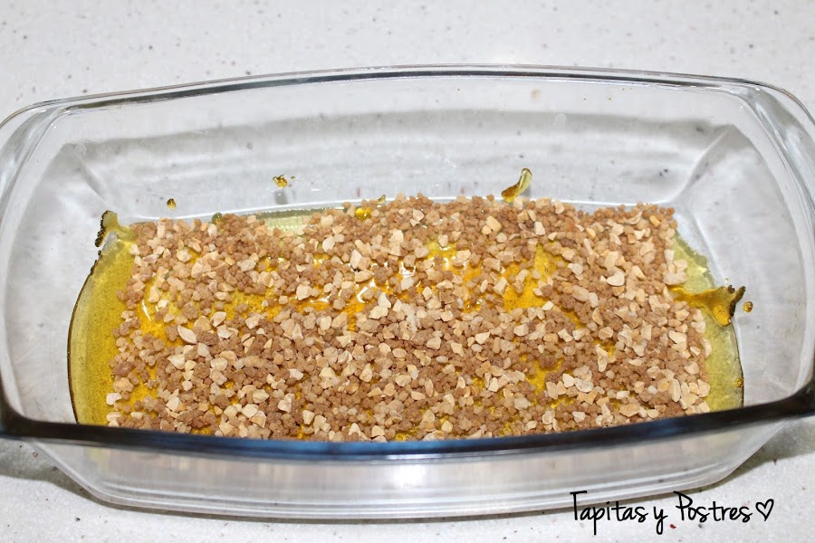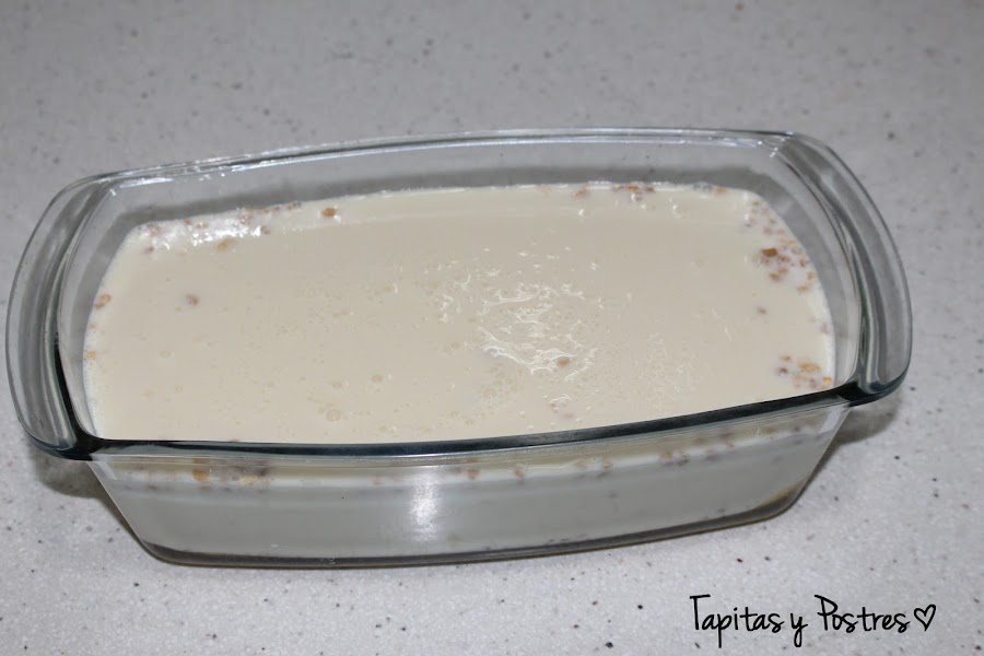 Y vertemos la mezcla en el molde. Horneamos al baño Maria unos 50 minutos.