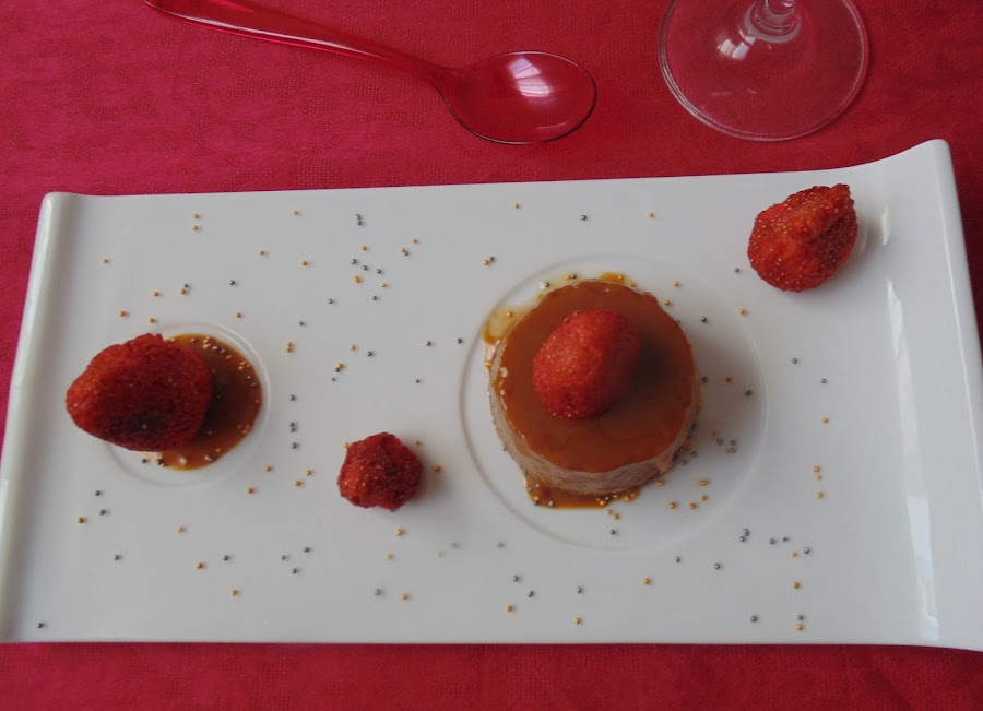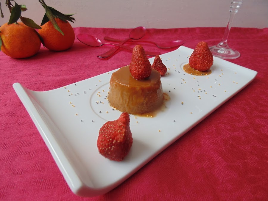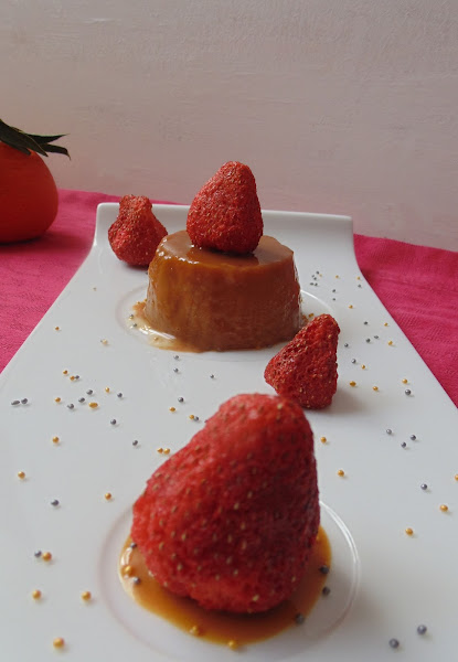Hacer un flan no tiene ninguna dificultad. Y si comparamos el sabor y la textura de un flan casero con la de uno industrial, la relación esfuerzo/beneficio es más que satisfactoria. Si además, en lugar de hacer un flan normal, hacemos un flan de dulce de leche entonces sabremos sin lugar a dudas como alcanzar el nirvana con un mínimo esfuerzo. El dulzor y la suavidad de este flan contrastan estupendamente con las fresas, pero si no tenemos o no nos apetecen, no son obligatorias. Con esta receta nos salen 6 raciones individuales, aunque también podemos hacer un solo flan grande, que necesitará un poco más de tiempo en el horno para que se cuaje completamente.