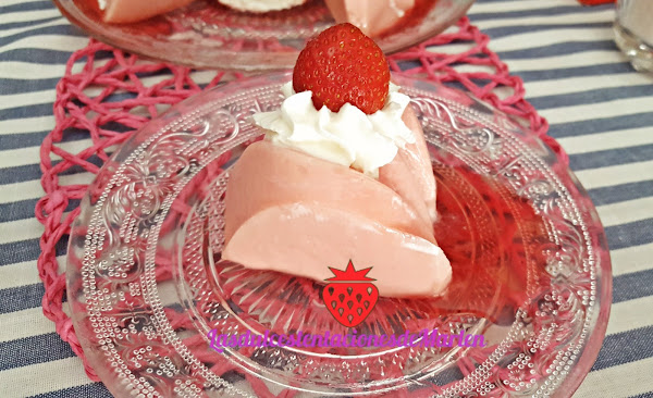 Yo le he puesto por encima sirope de fresa, y lo he decorado con las fresitas y la nata montada (crema de leche).