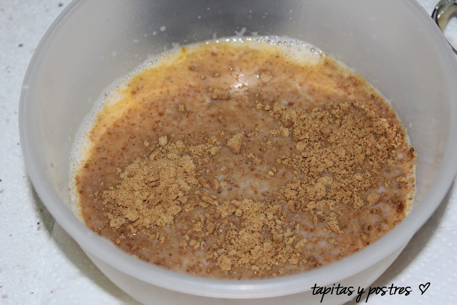 Como ya he dicho antes, es una variante del flan al micro, lo único es que a este flan le he añadido galletas molidas, pero todo lo demás es igual. Para mí, sigue teniendo un dulzor "justo", pero las galletas le da una textura algo distinta al flan de huevo. Muy rico también.