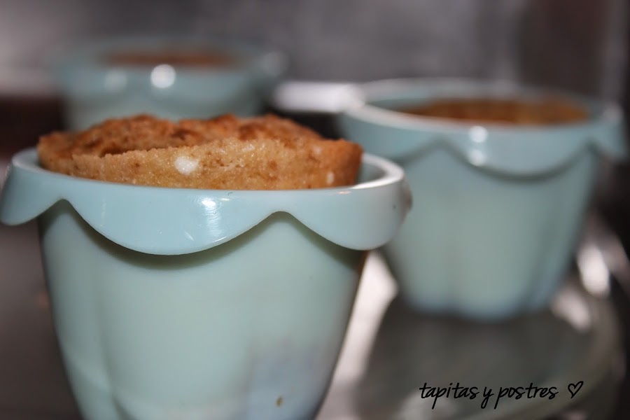 A los dos minutos y medio veremos que los flanes burbujean. Vigilamos para que no se desborden hasta que estén los tres minutos.