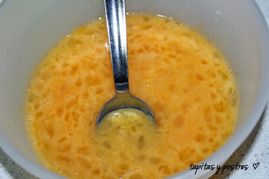 Removemos los huevos y el azúcar de forma manual, sin batidora para no meter mucho aire.