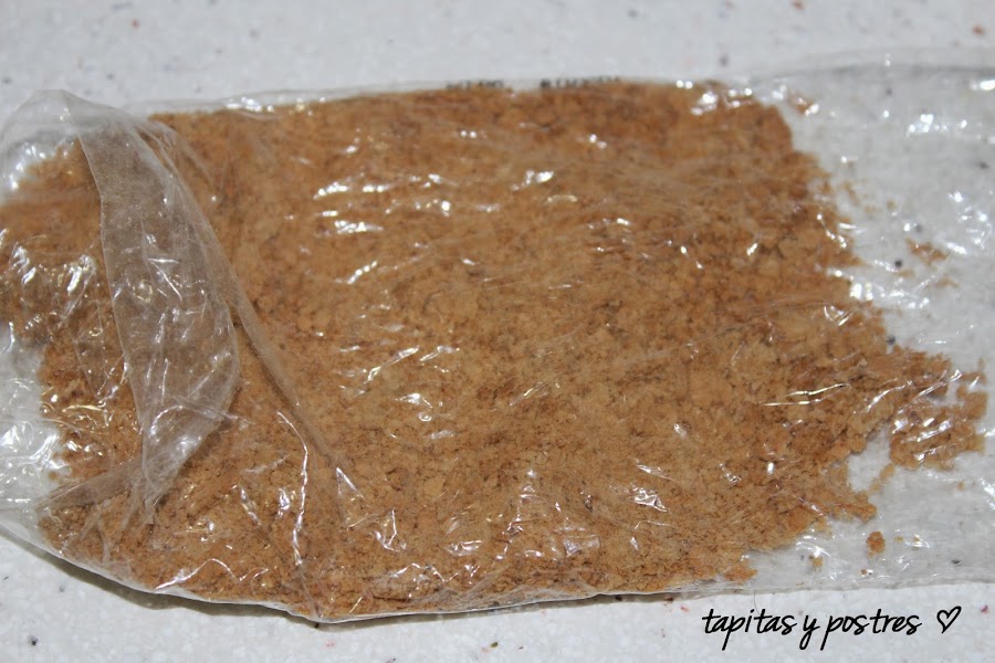 Ahora cogemos las tres galletas y las machacamos con un rodillo o con las manos, dentro de una bolsa. Es fácil porque son pocas.