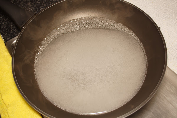 Ponemos una sartén a fuego medio con el azúcar y el agua para hacer el caramelo. Lo vamos removiendo de vez en cuando y tendremos cuidado de que no tome un color muy oscuro, porque amarga, es mejor que quede doradito. Lo vertemos sobre el molde elegido (esta vez he escogido uno de corona). Repartimos bien, hasta por los laterales y reservamos.