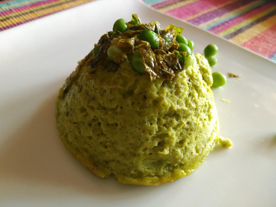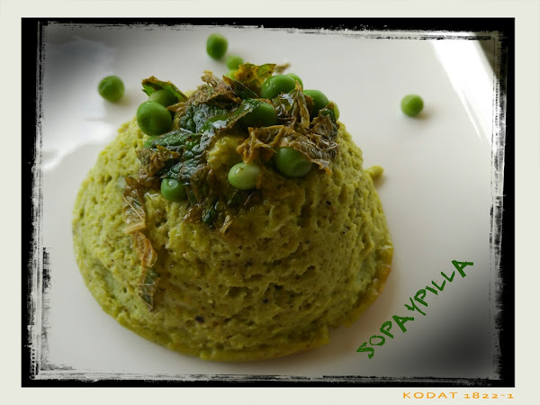 - Hornear los flanes 35 minutos, desmoldar y regar con la menta. Adornar con los guisantes reservados.