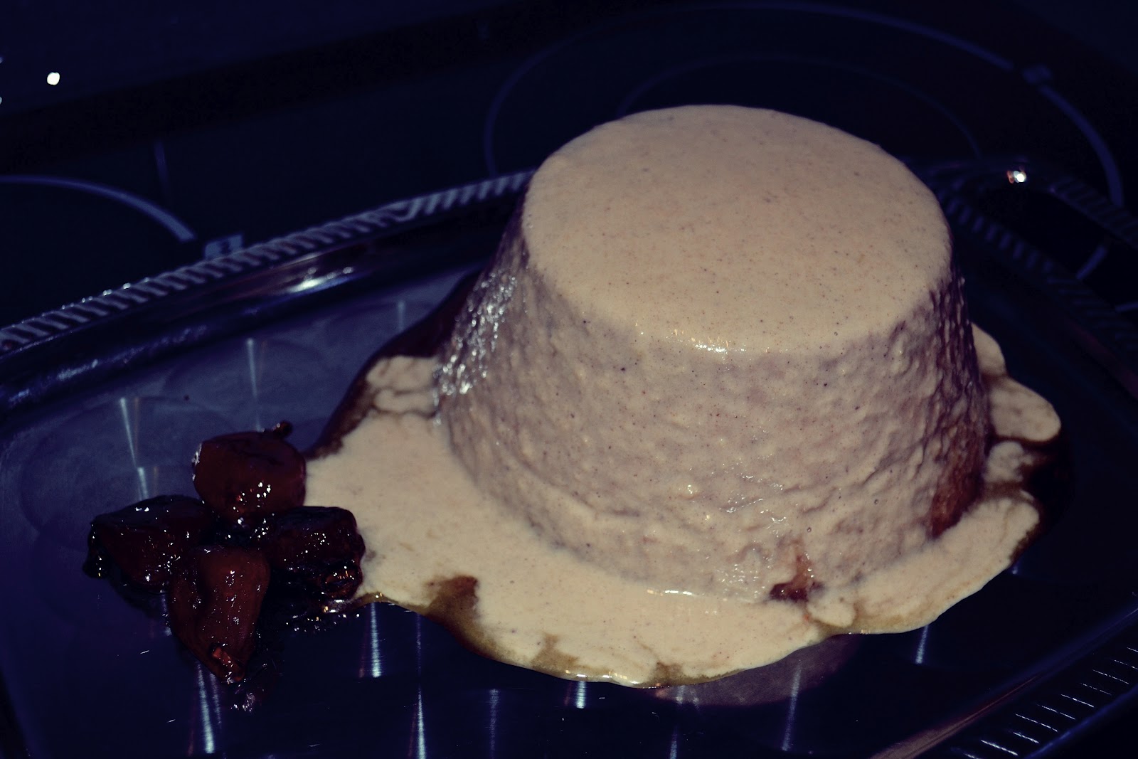 Yo hice un pequeño almíbar con medio vaso de agua y 1 cucharada de azúcar, luego puse 4 higos, cuando estaban almibarados los saque y los puse en la bandeja junto al flan, para adornar