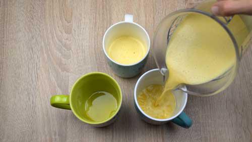 1. En primer lugar, en el vaso de la batidora vamos a agregar los huevos. También añadimos la leche o bebida vegetal, el endulzante (el azúcar y la cantidad que uses es a gusto de cada uno, en mi caso he usado panela pero puedes usar cualquier tipo de endulzante) y un chorro de esencia de vainilla.2. Después, batimos todos los ingredientes con la batidora o con un robot de cocina hasta obtener una mesa homogénea y líquida.