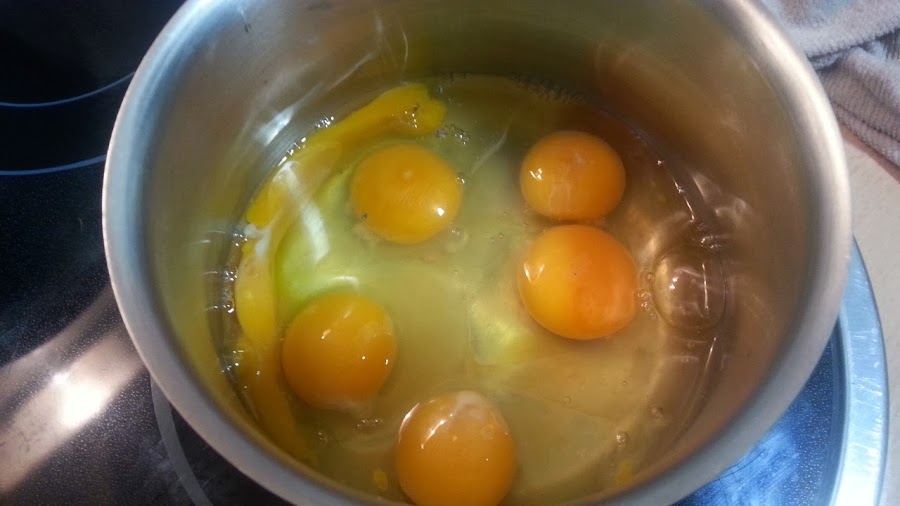 en una cazuela echamos los huevos
