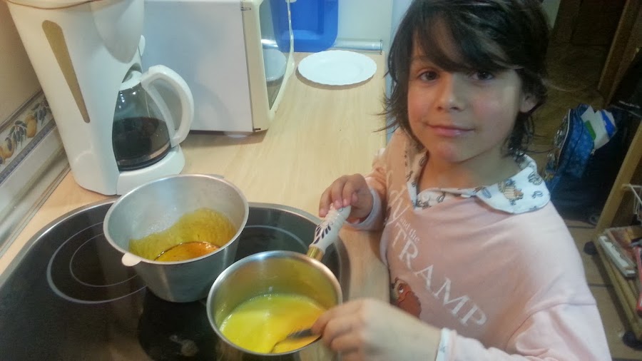 vais girando la flanera para ir cubriendo las paredes de la misma. ¡OJO! quema mucho ehhh, cuidado con que se os caiga o con probarlo, os podeis abarasar.