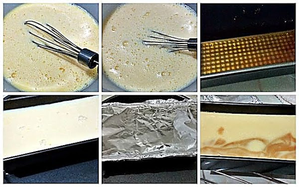 Lo vamos a hacer al baño María, para ello es necesario poner el molde dentro de otro que sea mas ancho y en el que pueda haber al menos dos dedos de agua. Lo metemos al horno precalentado a 160º de 40 a 45 minutos.
