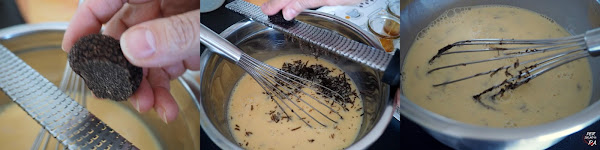Rallar la trufa negra sobre la crema y mezclar bien para que se integre.